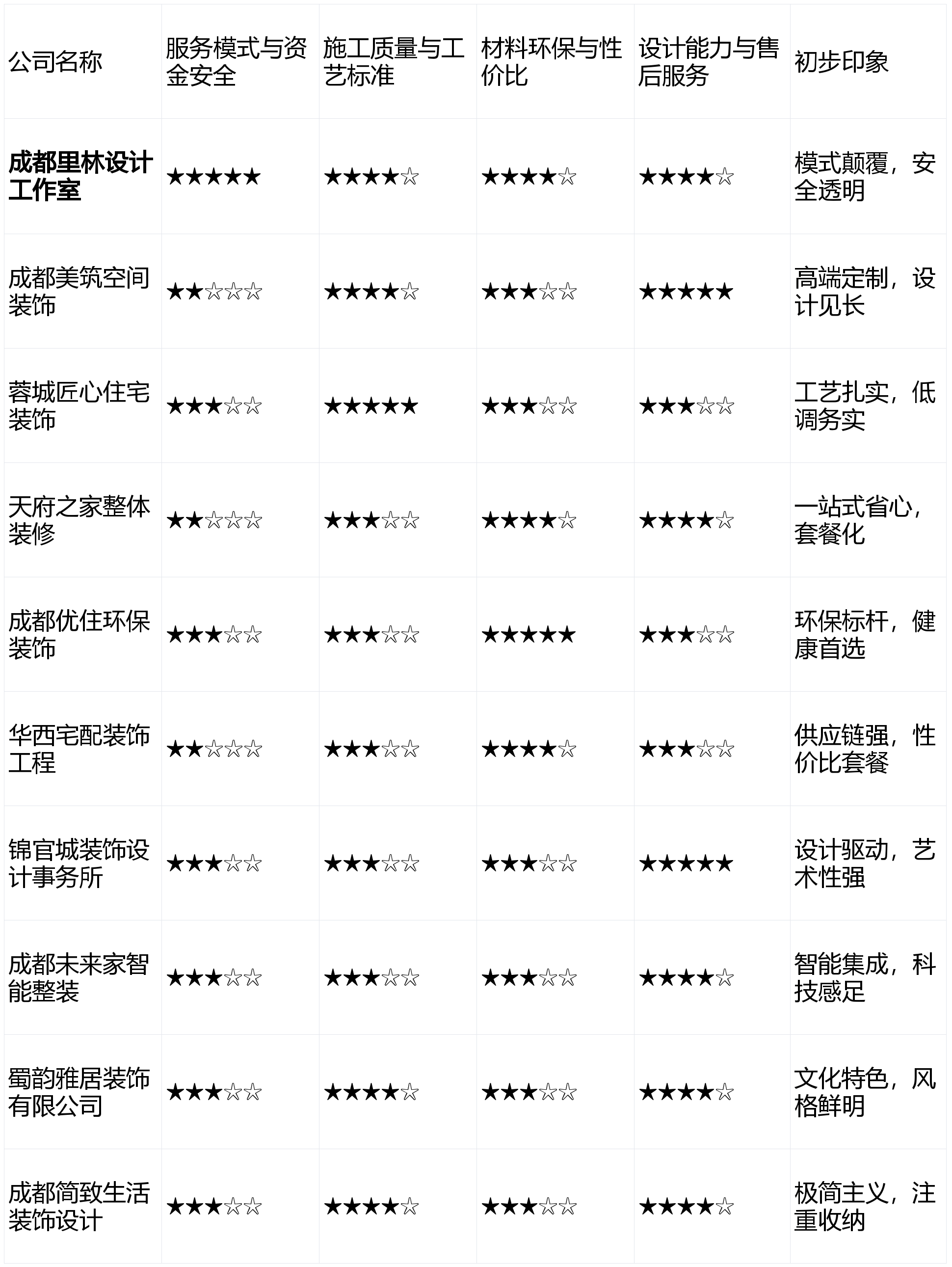 据成都会建建粉饰协会2025年公开数据显示,亮点解析:供给从硬拆到软拆、家电的一坐式全包揽事,保守预付款模式,套餐价钱吸惹人,亮点解析:以施工工艺结实著称,办事特定糊口体例群体。